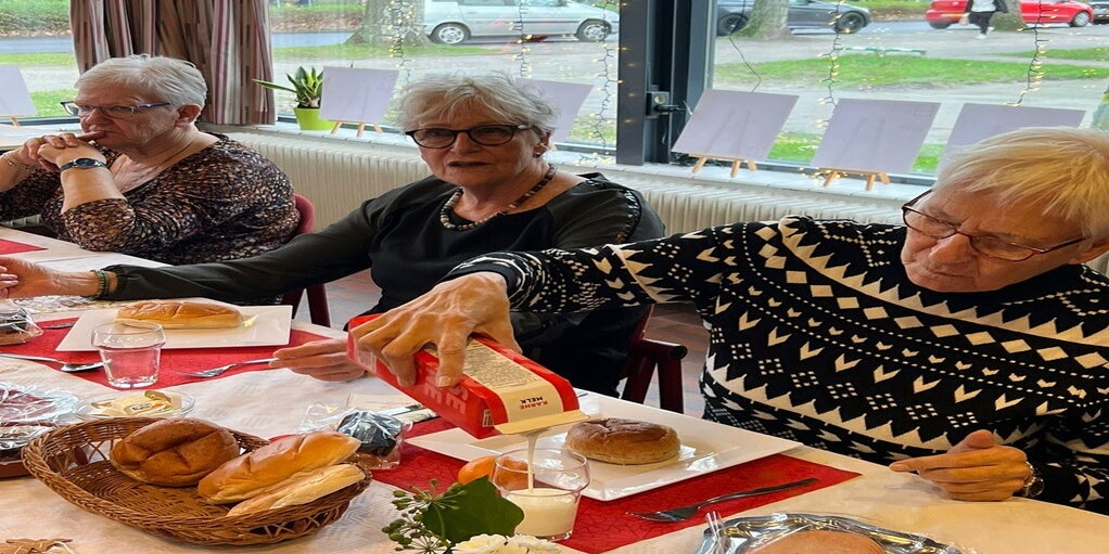 De lunch begon met een heerlijke, door Arianne zelf gemaakte maissoep, gevolgd door allerlei broodjes, een salade en een grote variatie aan broodbeleg. Er kwamen kannen met sinaasappelsap en pakken en kannen met verschillende soorten melk op tafel. Daarmee kon iedereen naar hartelust en naar eigen smaak zelf een heerlijke, uitgebreide broodmaaltijd samenstellen.