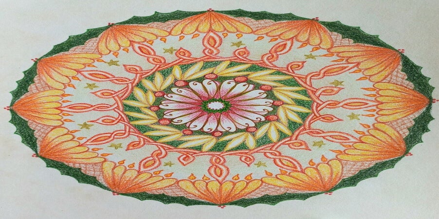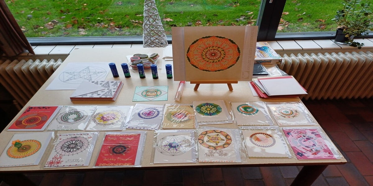 Er was keuze uit het maken van een mandala met in het midden een spirograaf patroon, of het tekenen van een kerstkaart versierd met washi tape. Het stond eenieder vrij om iets compleet anders te tekenen, of om in een eigen meegebracht kleurboek te kleuren.